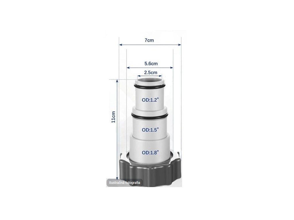 Adaptér A možno využiť k pripojeniu pieskovej filtrácie INTEX, solinátora INTEX, kartušovej filtrácii INTEX 5,7 m3/h alebo uzatváracieho ventilu. Týmto adaptérom je možné nahradiť hadice INTEX so šróbením za hadice s priemerom 32 alebo 38 mm.