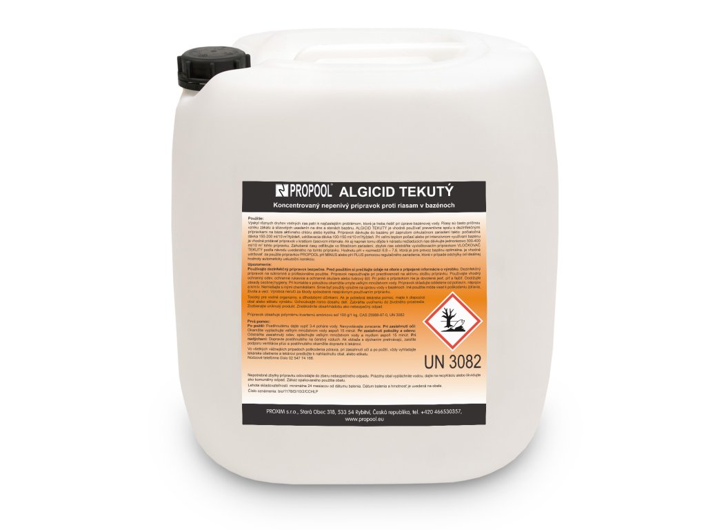 Koncentrovaný nepenivý prípravok proti riasam v bazénoch. Algicid tekutý je vhodný používať preventívne spolu s dezinfekčnými prípravkami na báze aktívneho chlóru alebo kyslíka.