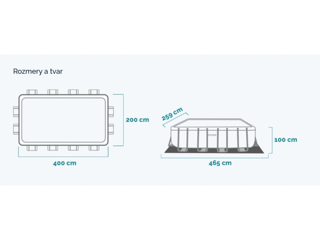 Špičková kvalita INTEX, ktorá je bežná už na celom svete, je teraz k zakúpeniu aj v menších veľkostiach. Jednoducho zmontovateľný, robustný bazén s dlhou životnosťou. Masívna obvodová konštrukcia zaisťuje vysokú stabilitu a dlhú životnosť. S týmto bazénom o veľkosti 400 x 200 x 100 cm je osvieženie, zábava a dobrá nálada zaručená. Objem vody pri 90% naplnení 6.836 l. Dno a bočné steny tejto série bazénov sú vyrobené z 3 vrstiev materiálu SUPER-TOUGH®. Tento veľmi pevný materiál sa skladá z polyesterovej podkladovej tkaniny so silným, obojstranne nalaminovaným PVC. SUPER-TOUGH® je obzvlášť odolný proti oderu, nárazu a slnečnému žiareniu. O optimálnu filtráciu sa stará kartušová filtrácia 2.006 l, ktorá je súčasťou balenia. Tá prináša nielen dobrý výsledok filtrovania, ale taktiež obsahuje všetky potrebné prípojky. S bazénom sú dodávané bezpečnostné schodíky, ktoré predstavujú pohodlný vstup a výstup z neho.