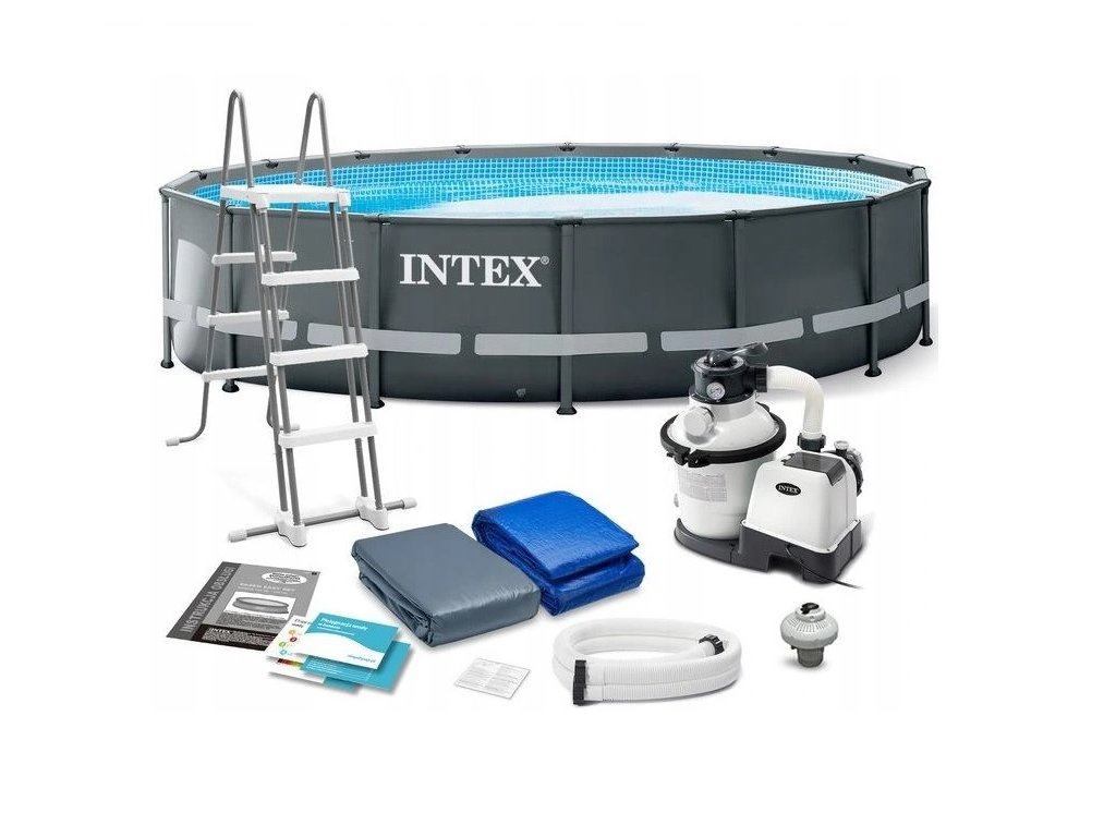 - K bazénu je dodávaná piesková filtrácia Intex Krystal Clear 4 s výkonom 4,5 m3 / hod., vrátane hadíc 2 ks (priemer 38 mm, dĺžka 2,2 m), spojovacieho materiálu a priechodiek stenou bazénu. Pre napojenie filtrácie sú pripravené priechody stenou bazénu s priemerom 38 mm (6/4 "). Filtračný piesok nie je súčasťou balenia, je potrebné ho objednať zvlášť.