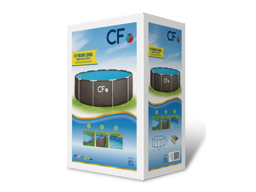 Udržujte svoj rámový bazén v perfektnej kondícii s našou náhradnou fóliou CF pre bazén 366 x 99 cm. Táto fólia je vyrobená z odolného PVC materiálu, ktorý zaisťuje dlhú životnosť a odolnosť voči mechanickému poškodeniu. Vonkajšia strana fólie má vzor ratanu, zatiaľ čo vnútorná strana je modrá, čo zaisťuje elegantný vzhľad a zároveň poskytuje dobrú ochranu proti UV žiareniu.