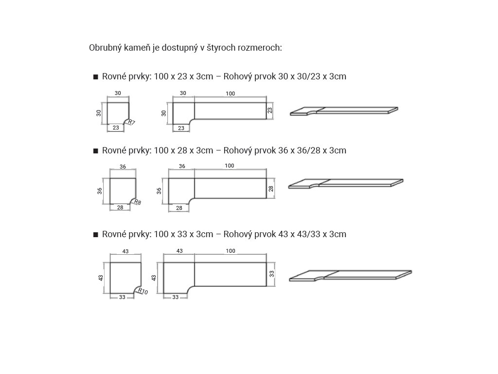 Prirodzene pôsobiaci bazénový lem zo žuly, zaoblený na vnútornej strane (smerom k bazénu). Má flambovaný povrch, ktorý sa aj v mokrom stave vyznačuje protišmykovosťou. Na rozdiel od umelých kameňov má rovnomerný povrch bez zakrivenia a zvlnenia.