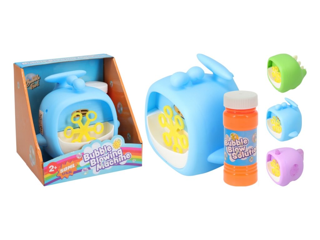 Náš stroj na bubliny je k dispozícii v troch rozkošných variantoch, ktoré potešia srdce každého dieťaťa. Vyberte si medzi fialovou hlavou jednorožca, modrou veľrybou a zelenou hlavou dinosaura a ponorte sa do sveta fantázie a zábavy.