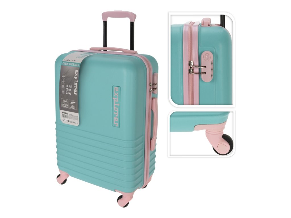 Objavte svet štýlovo a pohodlne s 30-litrovým kufrom ProWorld Explorer. Tento kompaktný a všestranný kufor je ideálny na krátke cesty a je vybavený kolieskami otočnými o 360° pre vynikajúcu ovládateľnosť. Žiarivá tyrkysová farba a ružové detaily mu dodávajú štýlový vzhľad, vďaka čomu ho ľahko nájdete na páse batožiny. Jeho ergonomický dizajn zahŕňa nastaviteľnú teleskopickú rukoväť a odolnú škrupinu z ABS materiálu, ktorá je ideálna na ochranu obsahu pred nárazmi a poškriabaním. Jeho rozmery 51 cm x 33 cm x 22 cm spĺňajú väčšinu požiadaviek na príručnú batožinu, vďaka čomu je tento kufor ideálnou voľbou pre moderného cestovateľa.