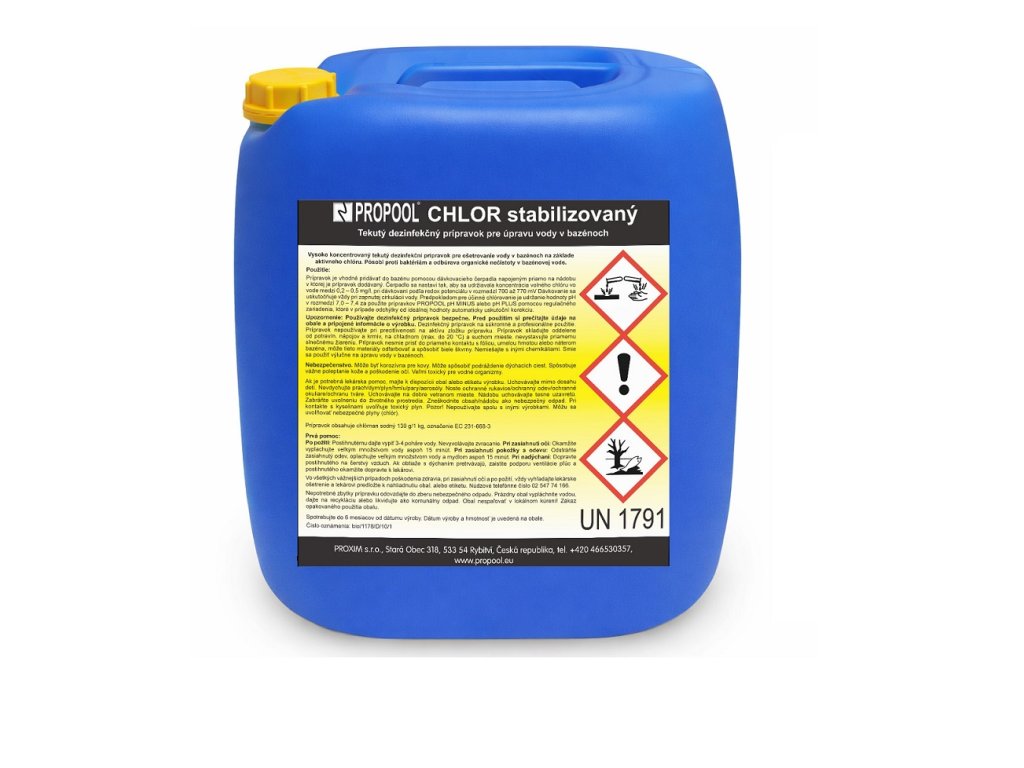 Vysoko koncentrovaný tekutý dezinfekčný prípravok pre ošetrenie vody v bazénoch na základe aktívneho chlóru. Pôsobí proti baktériám a odburáva organické nečistoty v bazénovej vode. Prípravok obsahuje chlórnan sodný 130 g / 1 kg.