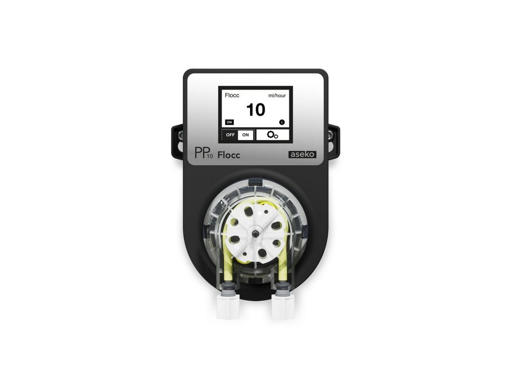 Dávkovacie čerpadlo ASEKO PP10 PRG Floc+C je inteligentné peristaltické čerpadlo navrhnuté špeciálne pre presné dávkovanie flokulantov / koagulačných činidiel (FLOC+C) vo vode bazénov, víriviek či vodných nádrží. Je vhodné pre objekty s objemom až do 250 m³. Vďaka svojej spoľahlivosti, presnosti a jednoduchému ovládaniu sa hodí nielen pre domácich majiteľov bazénov, ale aj pre profesionálne aplikácie.