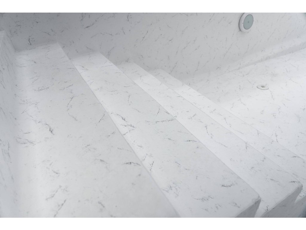 Kráľovský dizajn prináša rafinovanú eleganciu s 3D povrchom, ktorý vyzerá ako skutočný kameň v hlbokých prírodných sivých tónoch. Na otvorenom priestranstve jeho kamenná textúra zvýrazňuje autentický minerálny vzhľad, zatiaľ čo po ponorení sa bazén premení na výraznú kráľovskú modrú – čím vytvára živý a luxusný zážitok z plávania.