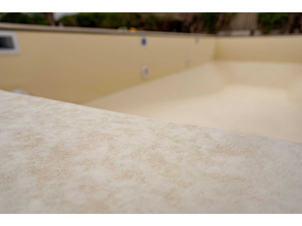Dizajn 3D-Uni Sand 3152 prináša do dizajnu bazéna teplo prírodných púštnych tónov s jednotným 3D povrchom, ktorý vyzerá ako skutočný kameň . Z vody odhaľuje jemný pieskovo-béžový povrch, zatiaľ čo po ponorení sa mení na jemný tyrkysovo-béžový efekt, ktorý dodáva bazénu pokojný, slnečný charakter.