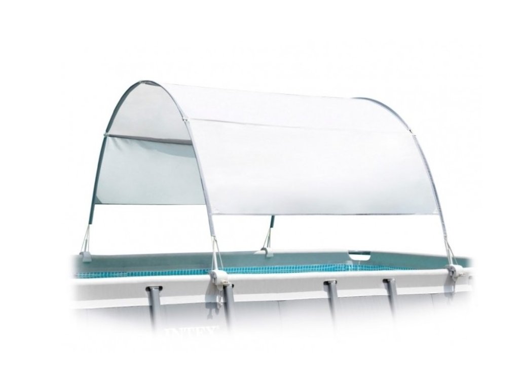 - Zastrešenie Intex má jednoduchú a funkčnú štruktúru a zároveň je veľmi odolné. Bolo vyrobené z rámu a nepremokavej textílie, ktorá chráni pred prenikaním UV lúčov. Ľahko ho pripevníte vďaka 4 svorkám a môžete rýchlo zmeniť jeho polohu pri pohybe slnka. Ľahká demontáž znamená, že zastrešenie môžete rýchlo odstrániť v dňoch bez slnka. Kompatibilné s bazénmi Intex.