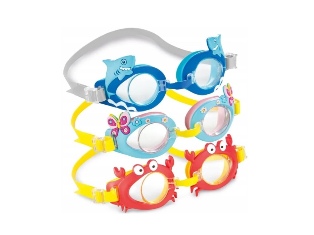 Detské plavecké okuliare Intex Fun Goggles 55610 v pestrom farebnom prevedení. Okuliare sú bezpečné a pohodlné vďaka vybraným vysoko kvalitným materiálom. Pevný materiál zaisťuje bezpečnosť dieťaťa pri plávaní. Remienky okuliarov sú nastaviteľné a majú silikón, ktorý zabraňuje vniknutiu vody do očí.