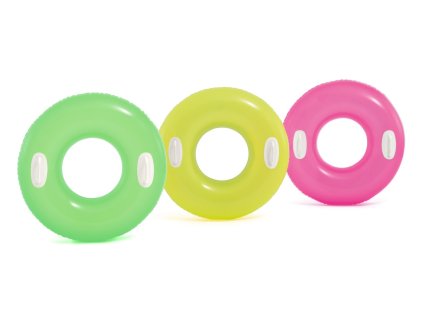 Veľký nafukovací kruh s pevnými držadlami pre deti od 8 rokov v neónovej farbe.