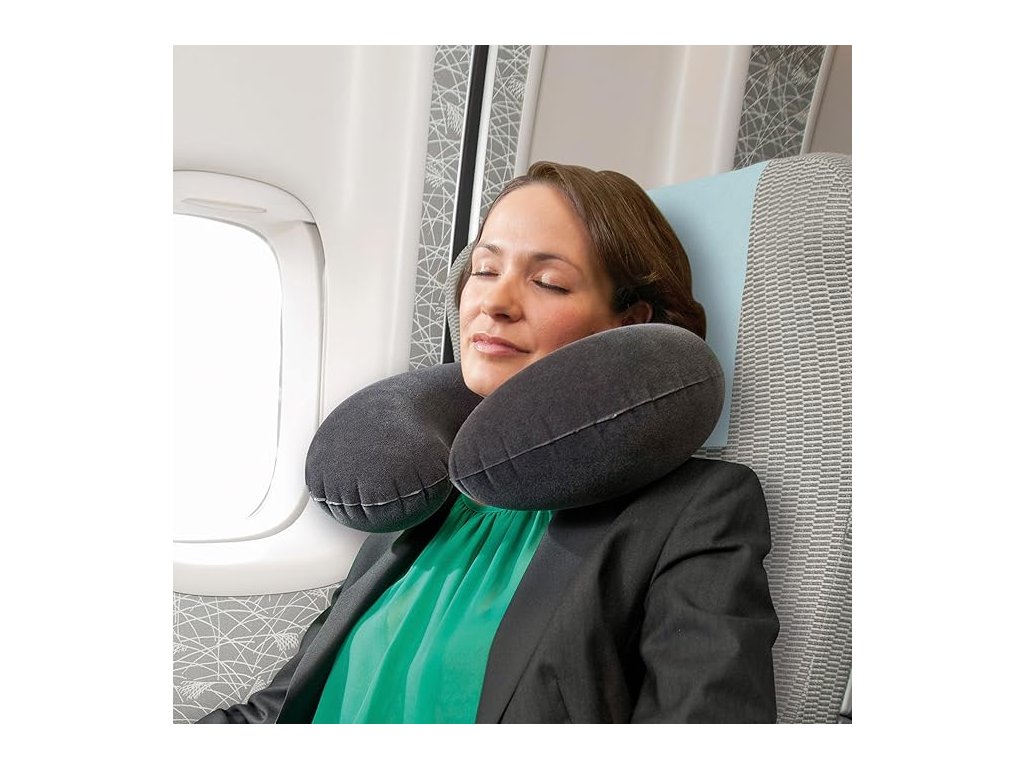 Nafukovací cestovný vankúš vám spríjemní cestu v aute, autobuse alebo lietadle.