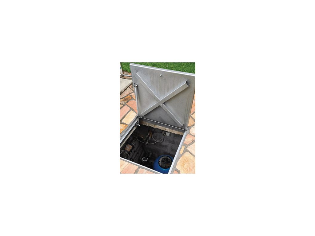 - Nerezový zakrývateľný poklop šachty s plynovými pružinami odolnými voči kyselinám. S 12 mm hlbokou miskou, ktorá je natretá základným náterom zo syntetickej živice a opieskovaná pre dobrú priľnavosť.