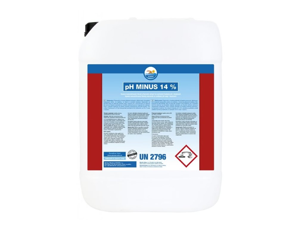 - Prípravok je vhodné pridávať do bazéna dávkovacím čerpadlom napojeným priamo na nádobu, v ktorej je produkt dodávaný. Hodnotu pH v rozmedzí 6,8 - 7,6, ktorá je pre prevádzku bazéna optimálna, je vhodné udržiavať pomocou regulačného zariadenia, ktoré v prípade odchýlky od ideálnej hodnoty automaticky vykoná korekciu. Pre zníženie hodnoty pH o 0,1 je potrebné pridať orientačne 0,2 l prípravku na 10 m3 vody v bazéne.