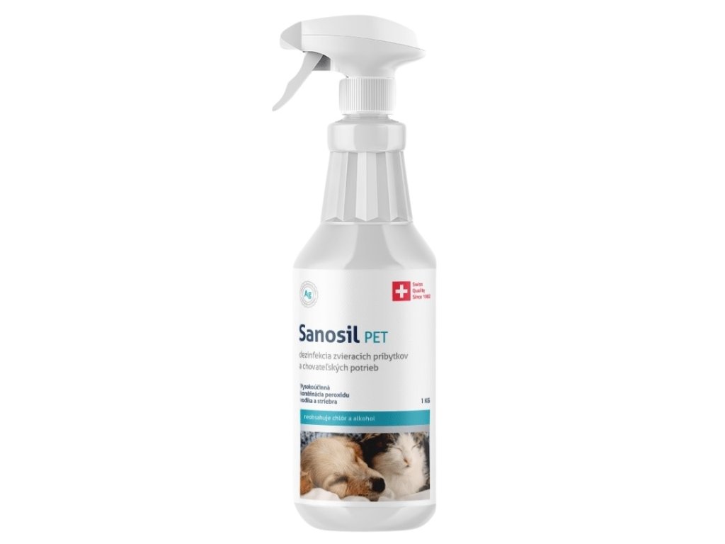 Dezinfekcia Sanosil PET pre zvieratká a veterinárne pomôcky a vybavenie ničí baktérie, vírusy, plesne, kvasinky, hnilobu, biofilm a mikroorgnizmy spôsobujúce zápach. Neobsahuje alkoholy, fenoly, aldehydy, KAZ a farbivá. Nevysušuje a nemení senzoriku ošetreného povrchu alebo vody. Na povrchu nezanecháva žiadne stopy, nie je potrebné ju oplachovať a neutralizovať, nie je korozívna. Má dlhotrvajúci účinok, bez bakteriálnej rezistencie a je vhodná na všetky typy povrchov, vrátane kožených.
