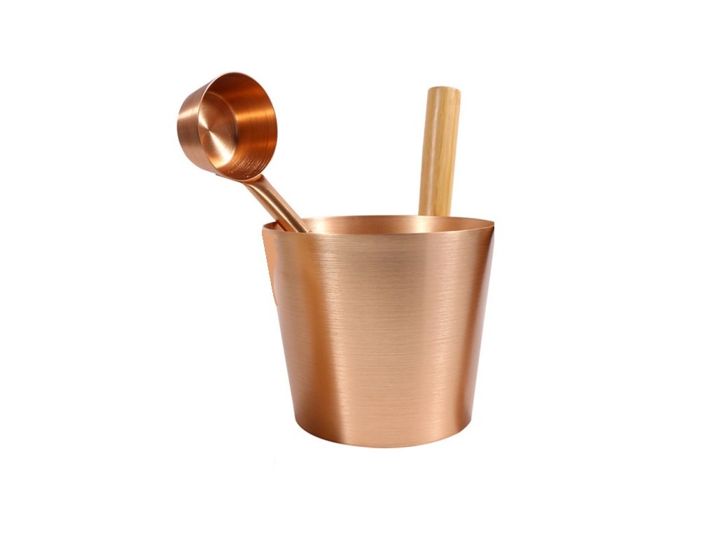 Hliníkové vedro do sauny s bambusovou rúčkou predstavuje spojenie moderného dizajnu a prírodného materiálu. Je odolné voči vysokým teplotám a korózii. Vďaka pevnej bambusovej rúčke sa pohodlne prenáša a pôsobí príjemne na dotyk. Súčasťou je aj naberačka z rovnakého materiálu, ktorá umožňuje jednoduché polievanie kameňov pre vytvorenie dokonalej pary. Ideálny doplnok do každej sauny.
