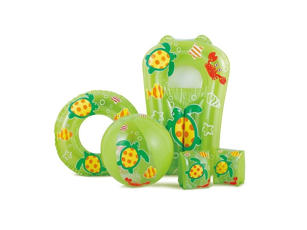 Nafukovacia súprava do vody s morským motívom by ti v lete nemal chýbať nielen na dovolenke, ale i na kúpalisku! S týmto parádnym kolesom, rukávnikmi, ležadlom zažiješ v bazéne alebo mori vždy plno zábavy!