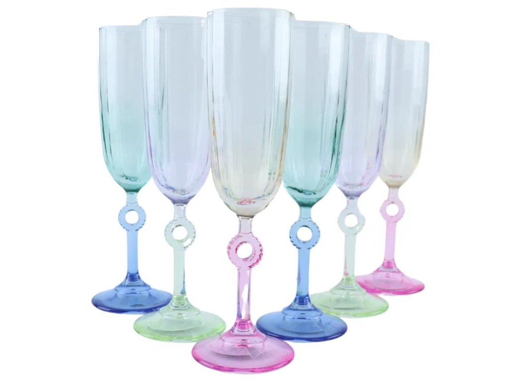 Premeňte každú slávnostnú príležitosť na štýlovú s farebnými pohármi na šampanské. Tento luxusný pohár na šampanské sa vyznačuje elegantným dizajnom a jemnou farbou, ktorý je ideálny na vytvorenie iskrivej atmosféry na slávnostných stretnutiach, večeriach a prípitkoch. Poháre sú navrhnuté tak, aby optimálne zachovali bublinky vášho šampanského, a umožnili vám vychutnať si každý dúšok ešte dlhšie.