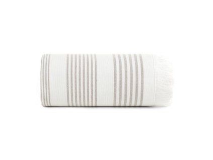 Plážová osuška KORFU zdobená kontrastnými pruhmi a strapcami.