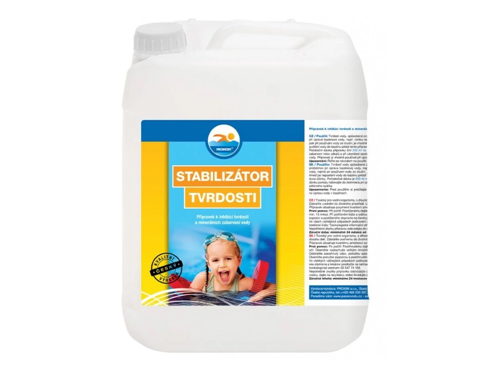 Prípravok k inhibícii tvrdosti a minerálnych zafarbení vody.
