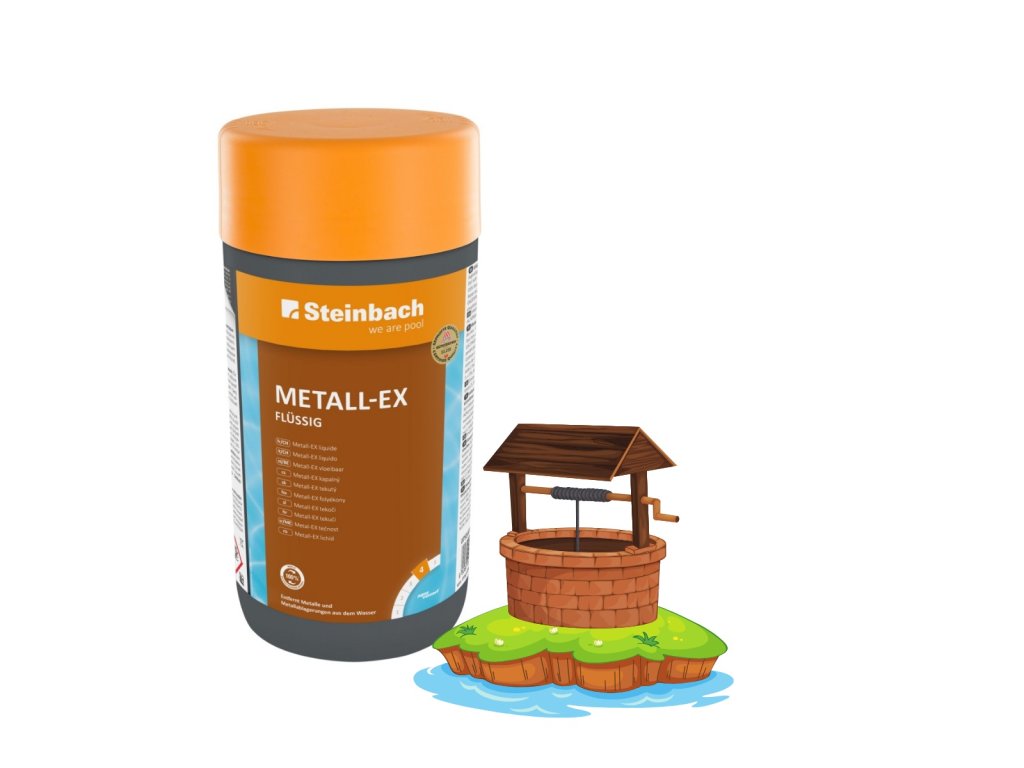 Pred pridaním Metal-EX upravte hodnotu pH na optimálne rozmedzie 7,0 - 7,4. Pri bežiacom čerpadle rovnomerne rozdeľte 0,3 - 0,6 l Metal-EX na 10 m³ vody na vstupné trysky alebo na vodnú hladinu. Nechajte pustené filtračné čerpadlo po dobu najmenej 48 hodín. Potom vykonajte spätný preplach. Skontrolujte hodnotu pH a v prípade potreby ju opäť upravte. Kovy a vodný kameň kryštalizujú, usadzujú sa vo filtri a je možné ich odstrániť spätným preplachom. Ihneď po pridaní prípravku sa dá kúpať.