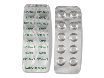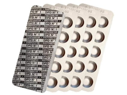 Reagenčné tablety na meranie hodnoty viazaného a celkového chlóru vo vode.