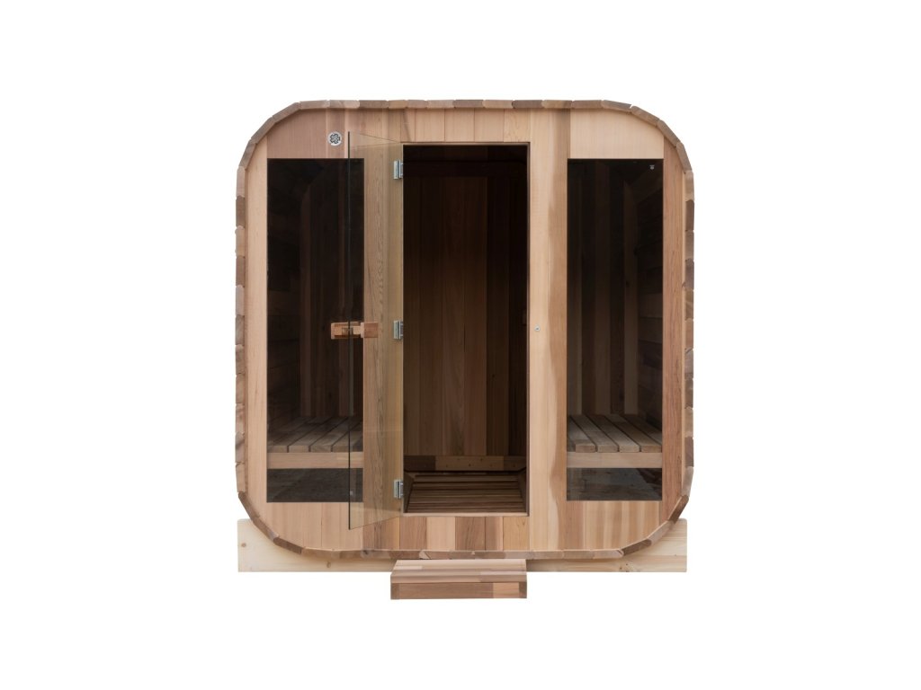 - Vonkajšie rohy tejto sauny majú zaoblené hrany. Tento dizajn zjemňuje vzhľad a vytvára hladšie a elegantnejšie línie. Okrem toho sa zaoblené hrany lepšie čistia.