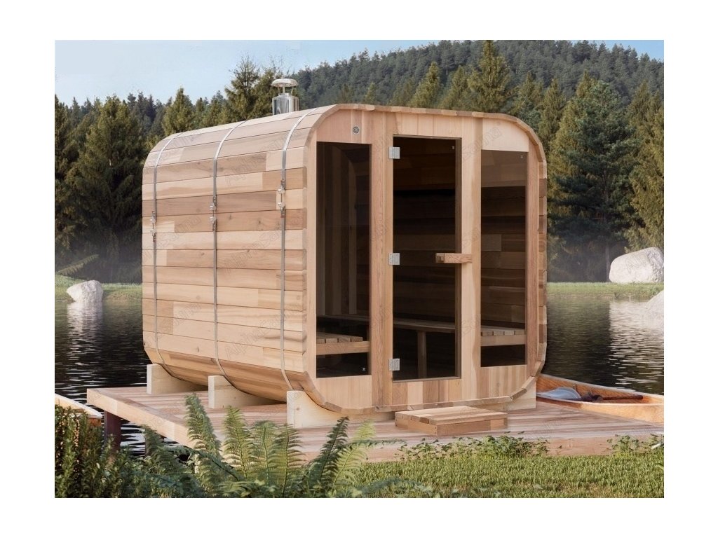 Ohromujúca vonkajšia sauna, ktorá má odvážny, elegantný dizajn sa stane vašou vytúženou oázou relaxu. Nemusíte zdieľať priestor s neznámymi ľuďmi v komerčných saunách, ale máte možnosť prispôsobiť si prostredie a teplotu podľa vlastných preferencií, čo zaručuje maximálne pohodlie a súkromie.