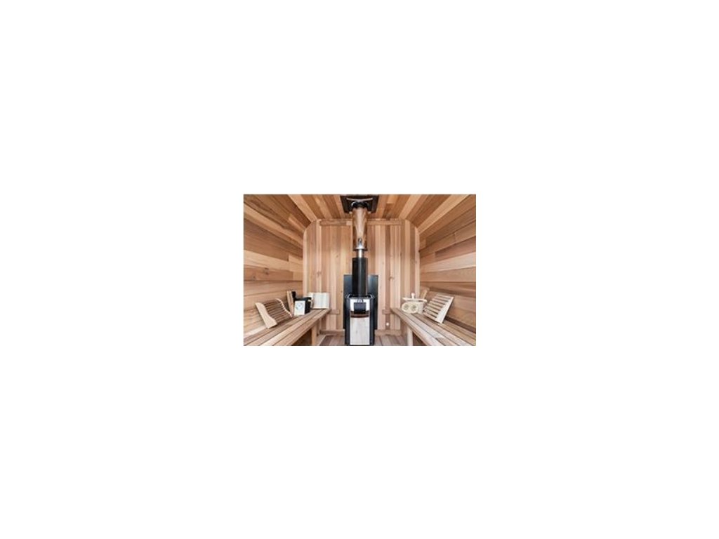 - Pohodlné drevené lavice sú umiestnené tak, aby sa tam zmestilo viac ľudí, ktorí si saunu spoločne užívajú. Môžete si ľahnúť na lavičku, urobiť si strečing alebo sa jednoducho posadiť a užívať si teplo. Konštrukcia lavíc umožňuje užívateľom vybrať si rôzne výšky sedenia podľa ich tepelnej odolnosti, aby ste si vychutnali saunu v čo najväčšej miere.