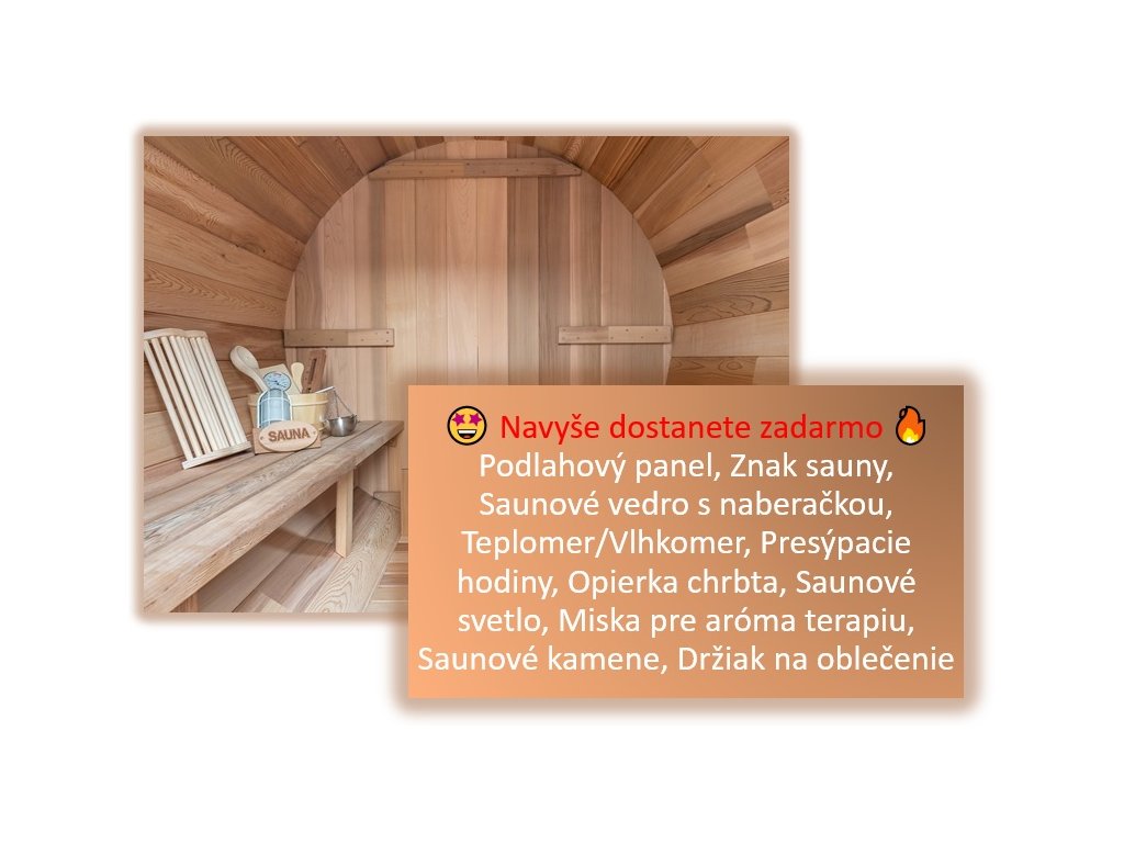 - Interiér sauny je vyrobený prevažne z cédrového dreva. Krásna textúra a jedinečná vôňa vytvára prirodzenú a hrejivú atmosféru, akoby ste boli v prírode.
