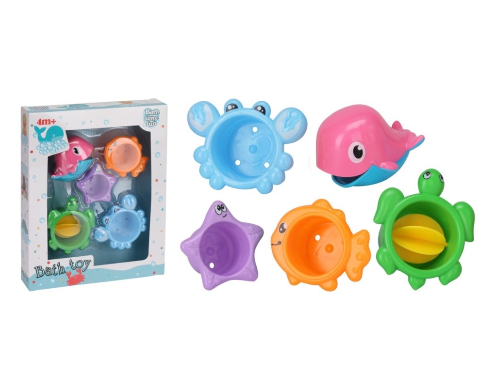 - súprava obsahuje 5 rôznych hračiek s otvormi na vypúšťanie vody, ktoré sú ľahko uchopiteľné pre malé rúčky