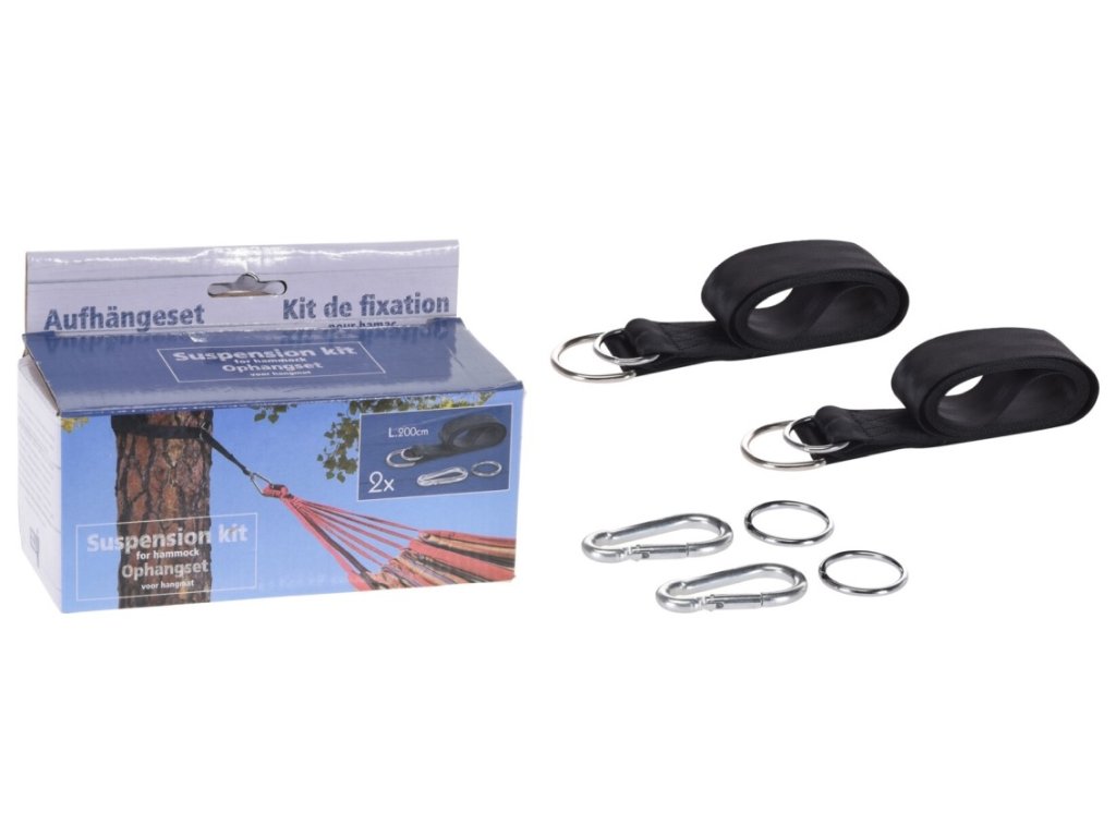 Popruhy na hojdaciu sieť, závesnú súpravu, prenosnú plachtu na hojdaciu sieť alebo príslušenstvo na kemping.