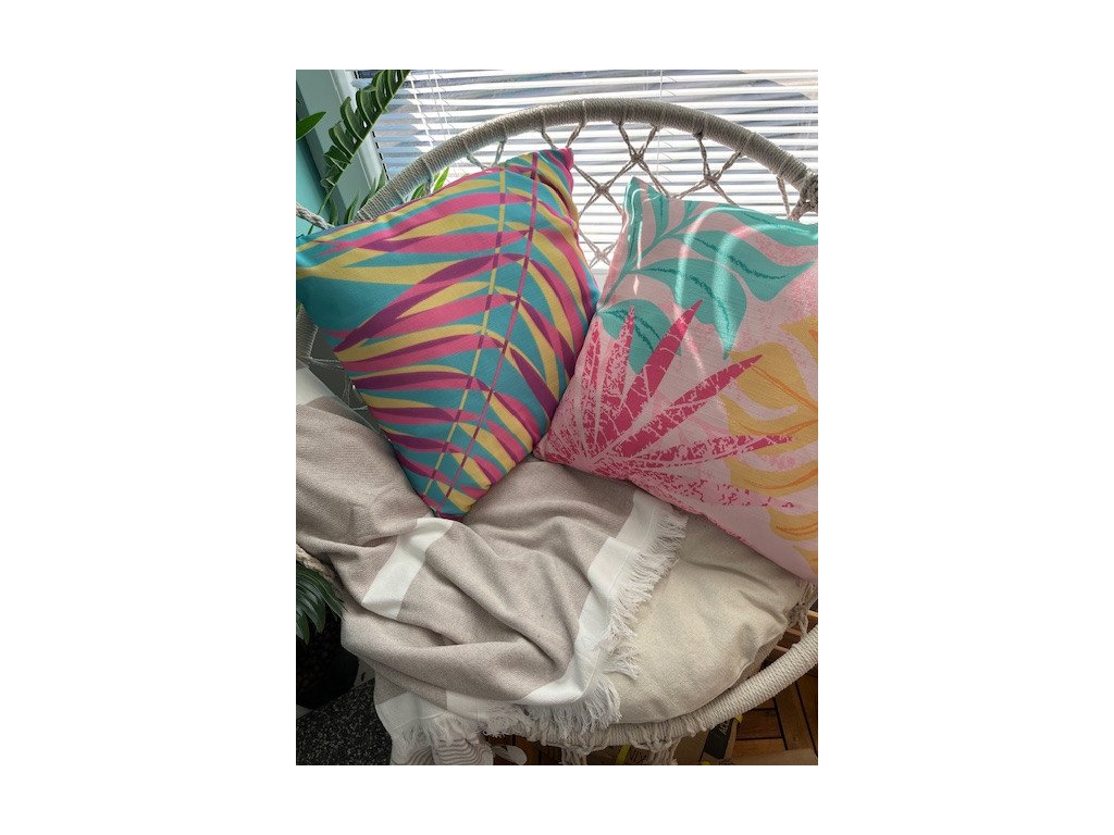 Tento žiarivý dekoračný vankúš s tropickými listami vnesie do vášho domova nádych prírody a relaxácie. Je ideálny pre tých, ktorí milujú tropickú atmosféru a užívajú si útulný a štýlový obytný priestor. Ideálny na zdobenie obývačky, spálne alebo vonkajšej terasy.