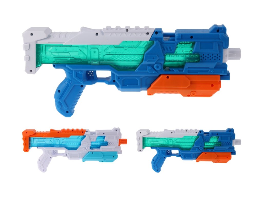 Predstavená vodná pištoľ je v modrej farbe s prvkami biele a oranžovej. Munícia, ktorou je voda, je bezpečná, takže sa môžete pustiť do potýčky s rodinou alebo rovesníkmi.