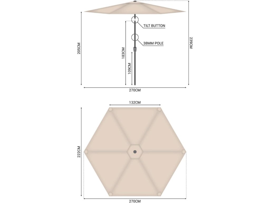- Priemer: 270 cm