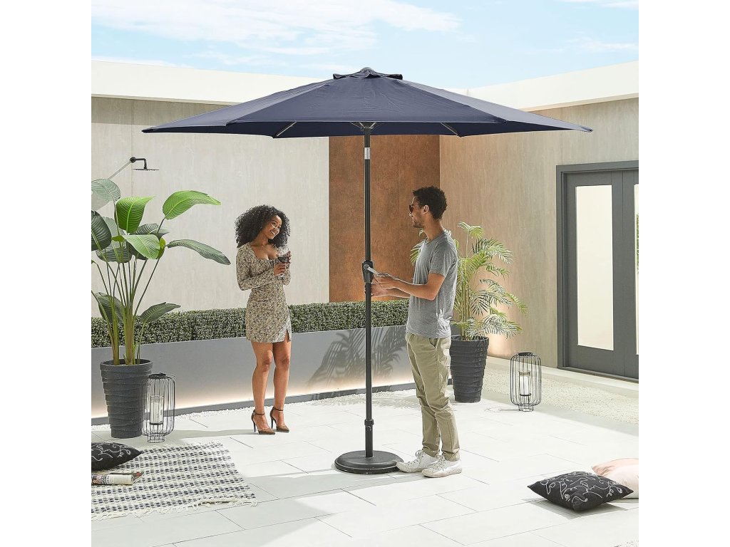 Tento krásny slnečník v elegantnej svetlosivej farbe poskytuje UV ochranu na vašom balkóne alebo záhrade a predlžuje letné večery vďaka integrovanému LED osvetleniu. Robustná tyč z ľahkého hliníka je vybavená rukoväťou na rýchle otváranie a povrch je vyrobený z odolného, nepremokavého polyesteru. Vďaka týmto vlastnostiam je tento slnečník nenáročný na údržbu, takže ho môžete používať celé leto.