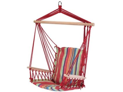 Doprajte si relax v záhrade s týmto závesným kreslom s červenými pruhmi. Kreslo je kvalitne spracované. Má pohodlné penové sedadlo aj operadlo s prešitím, prírodné závesné laná, lakťové opierky a horný rám z prírodného dreva pre maximálne pohodlie. Materiál: polybavlna - 60 % bavlna, 40 % polyester, 220 g/m2.